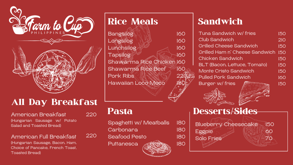 Want to enjoy a warm cup of coffee in front of a bonfire, surrounded by the chill breeze of La Trinidad, Benguet? Farm to Cup also has Grill Night where you get the chance to chill and grill by the bonfire with your loved ones. Available products for grilling are: sausages, chicken BBQ, chicken wings, corn, dumplings, and kebab.